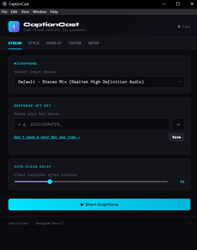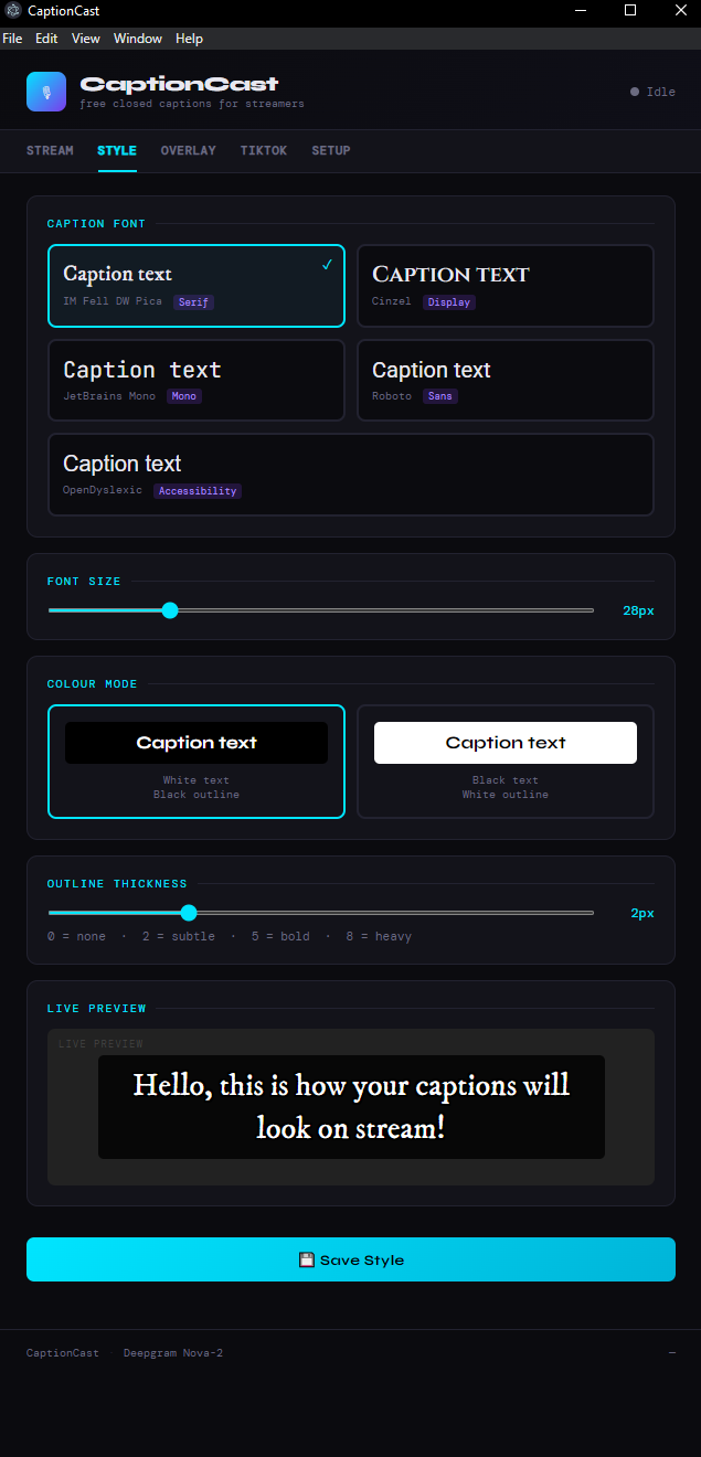 CaptionCast started from a simple moment — someone in chat couldn’t follow the stream without captions. This exists to make sure everyone can be part of the experience.
