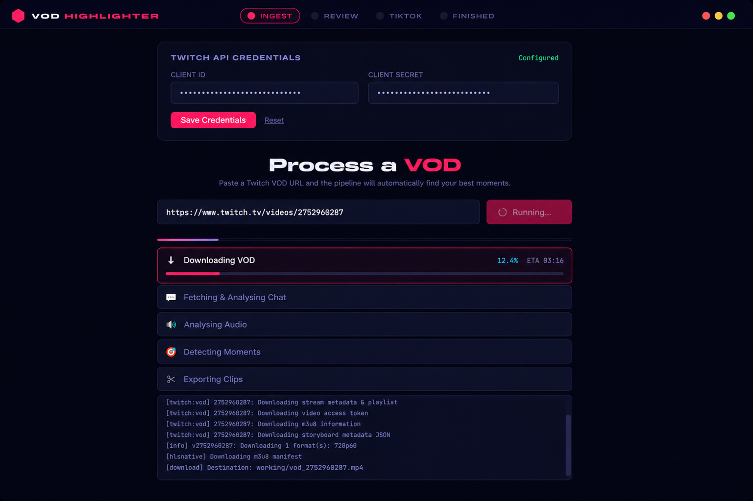 Chat triggers and gameplay events flag potential highlights.