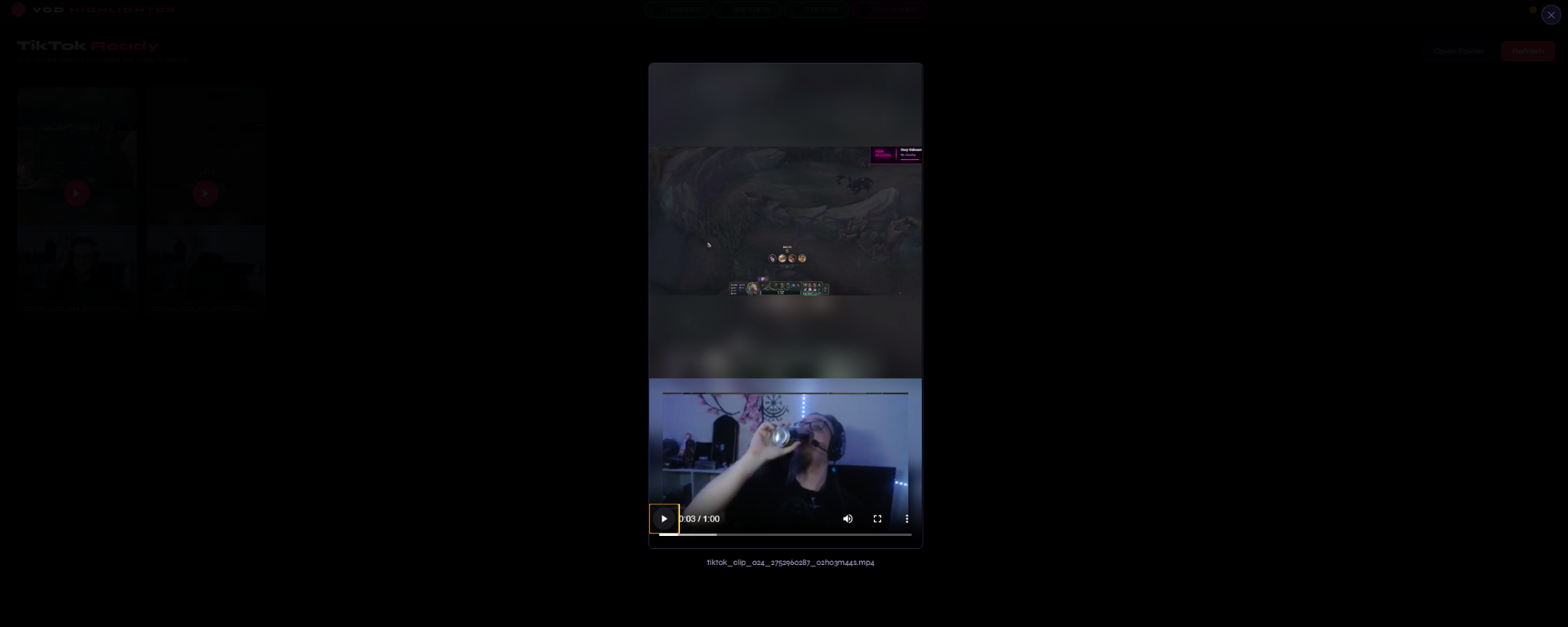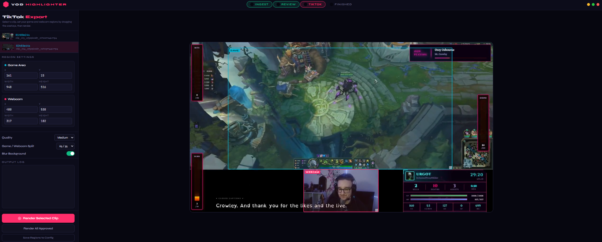 Automatically positions gameplay and webcam for vertical content.